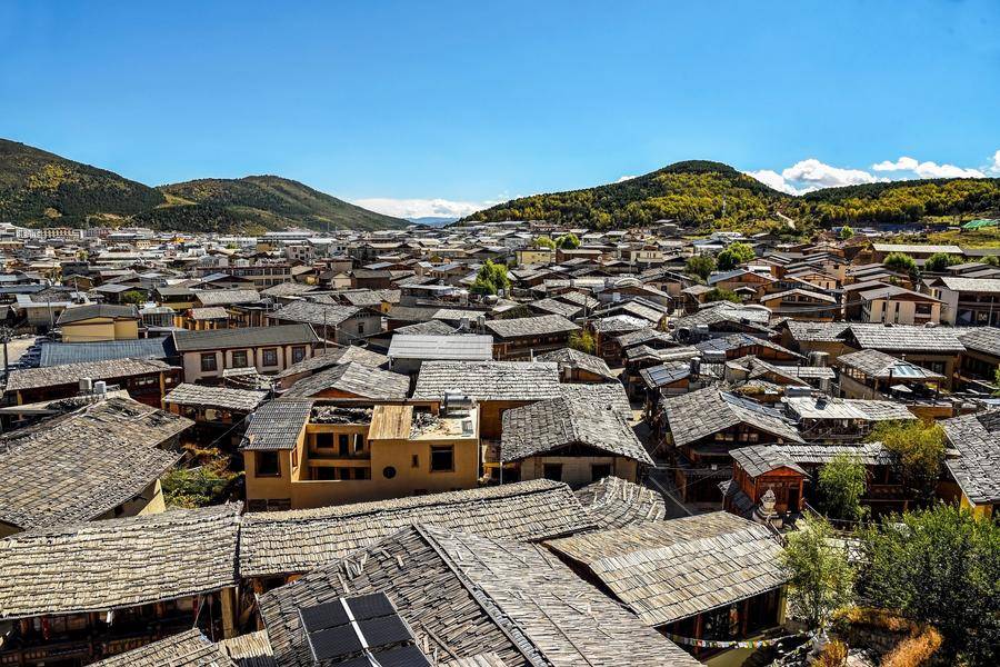 唐儀鳳、調露年間(西元676-679年),土蕃在這裏的大龜山頂設立寨堡,名“獨克宗”,一個藏語發音包含了兩層意思,一為“建在石頭上的城堡”,另為“月光城”。後來的古城就是環繞山頂上的寨堡建成的。獨克宗古城原是中國保存得最好、最大的藏民居群,而且是茶馬古道的樞紐。獨克宗古城,是一座具有1300多年歷史的古城,曾是雪域藏鄉和滇域民族文化交流的窗口,川藏滇地區經濟貿易的紐帶。但2014年1月11日淩晨1時27分的一場大火,將古城損毀殆盡,目前仍保存下來最完整的是月光廣場一帶,獨克宗最具特色的轉經筒也在於此。
