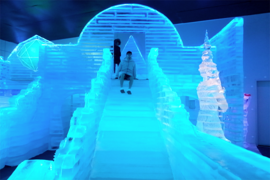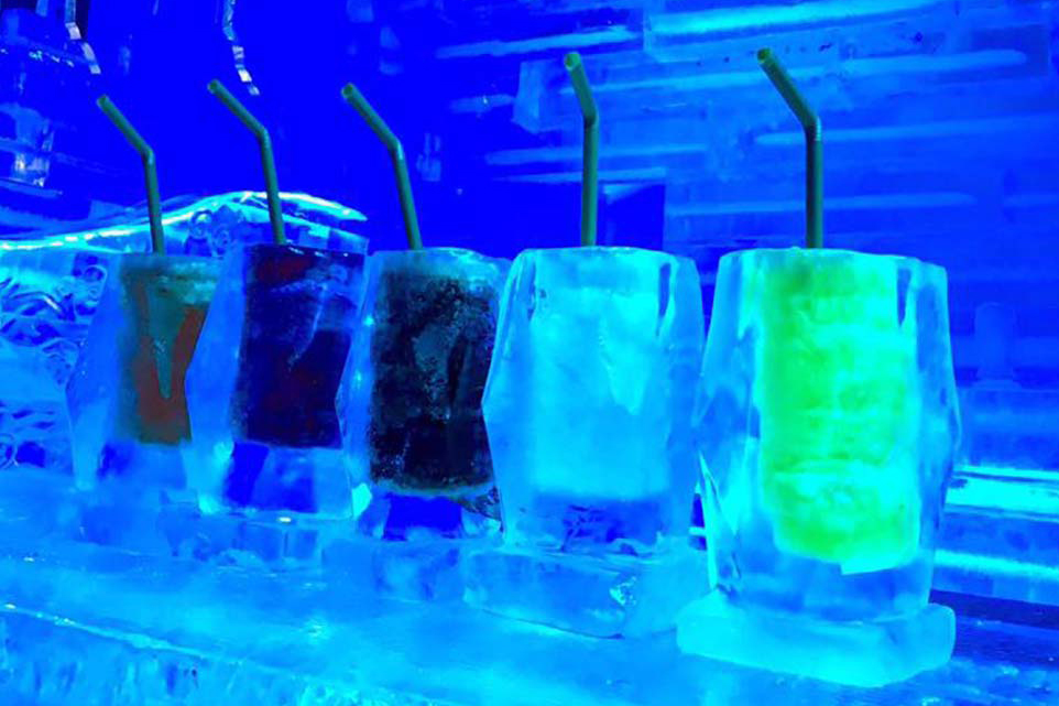 接下來我們將進到冰上奇緣的重頭戲之一,大型冰宮~首先工作人員會先引導客人穿上特製的防寒衣,然後先在5度左右的溫控制室裡待上兩分鐘,先讓身體適應一下低溫~因為等等的冰宮是零下12~15度!!兵宮裡面迎接我們的是一條長長的滑梯,當然你不怕屁股冰冰的也可以從上面滑下來喔!中間還有各式造景,可以讓大家盡情的在裏頭拍照喔!最特別的地方就是我們為各位貴賓安排的飲料一杯,但這杯子可是用冰塊打造的喔!請大家在1分鐘內喝完,要不然他就結冰囉!!喝完的杯子再出口處有一個杯子山,可以把杯子丟在那邊砸破喔!象徵老外喝完酒後會砸杯子一樣的一個儀式,多麼澎湃好玩呀!!